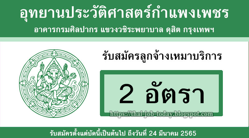 อุทยานประวัติศาสตร์กำแพงเพชร รับสมัครคัดเลือกเป็นลูกจ้างเหมาบริการ 2 อัตรา